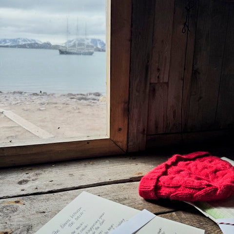 'Everyone always wonders what does an artist do? This artist knitted herself a jumper in your handed cashmere yarn and then spent two weeks working on location every day. I sailed with 30 other scientists and artists inside the Arctic Circle. It seemed appropriate to be wearing sustainable cashmere yarn whilst we witnessed the affects of climate change and discussed how we might raise awareness once we arrived home.'