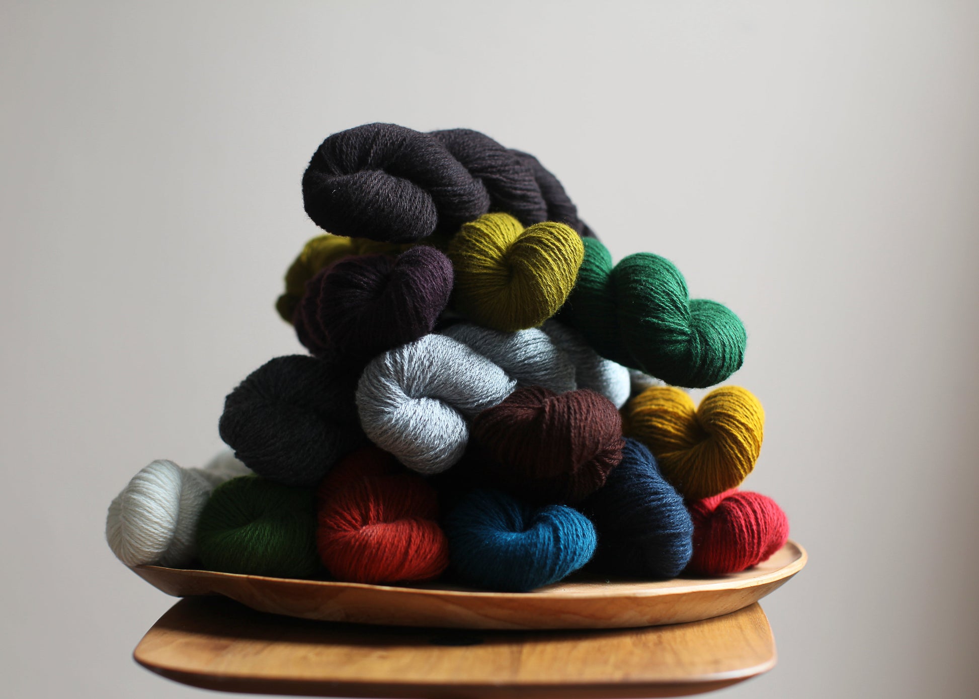 Choose two mini skeins, either the same colour or maybe a gentle marl. Two colours close together will give you an interesting texture without being jarring. Have a look at the 4 ply colour range and send me a note in the comments as to which colours you'd like as there are too many to list as options unfortunately.